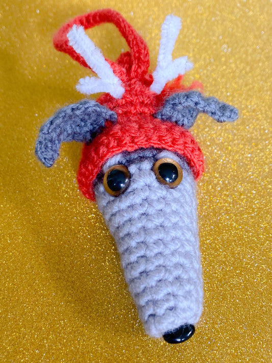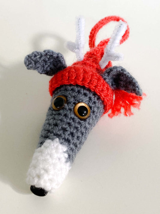 GREY BLUE WHITE WHIPPET GREYHOUND SIGHTHOUND LURCHER ITALIAN GREYHOUND FESTIVE REINDEER HAT CHRISTMAS DECORATION TREE ORNAMENT CHARM KEEPSAKE GIFT