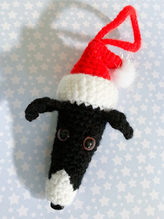 BLACK WHITE WHIPPET GREYHOUND SIGHTHOUND LURCHER ITALIAN GREYHOUND FESTIVE SANTA CHRISTMAS DECORATION TREE ORNAMENT CHARM KEEPSAKE GIFT