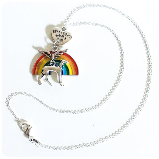 SILVER GREYHOUND WHIPPET SIGHTHOUND LURCHER CHARM NECKLACE CHAIN LOVE HEART PAW PRINT BEST FRIEND MEMORIAL PET BEREAVEMENT LOSS ANGEL RAINBOW BRIDGE KEEPSAKE GIFT