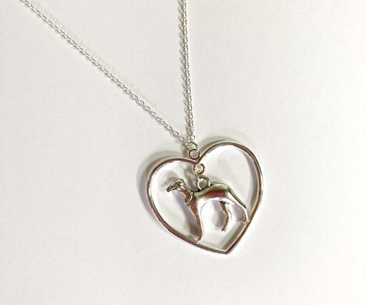 SILVER GREYHOUND WHIPPET SIGHTHOUND LURCHER CHARM NECKLACE CHAIN LOVE HEART KEEPSAKE GIFT