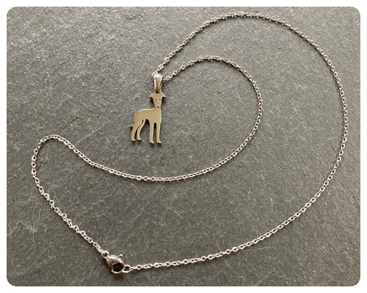 SILVER STAINLESS STEEL GREYHOUND WHIPPET SIGHTHOUND LURCHER CHARM NECKLACE CHAIN KEEPSAKE GIFT