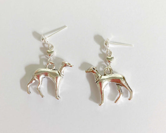 SILVER ITALIAN GREYHOUND WHIPPET SIGHTHOUND LURCHER STUD EARRINGS DROP DANGLE CHARM LOVE HEART KEEPSAKE GIFT