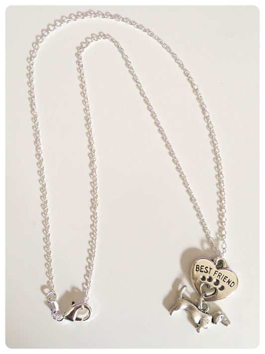 ANTIQUE SILVER DACHSHUND SAUSAGE DOG CHARM NECKLACE BEST FRIEND LOVE HEART PAW PRINT KEEPSAKE GIFT
