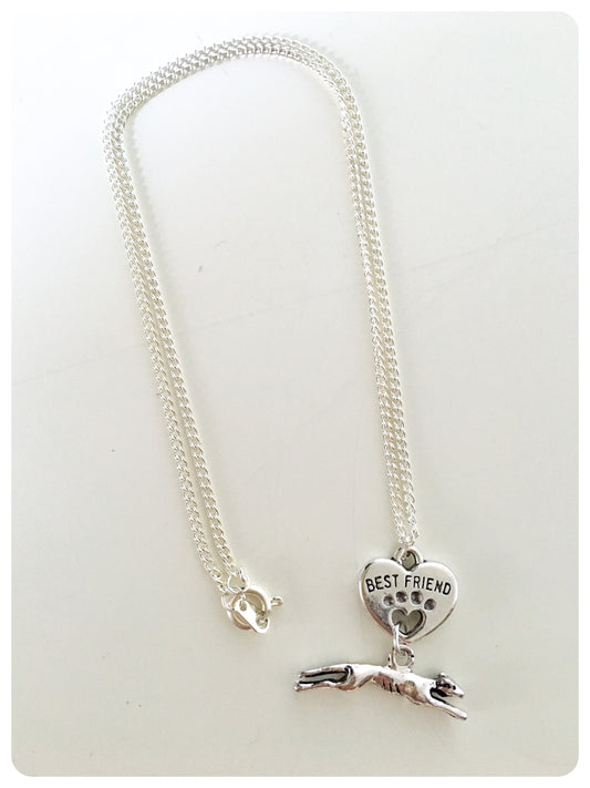 SILVER GREYHOUND WHIPPET SIGHTHOUND LURCHER CHARM NECKLACE CHAIN BEST FRIEND HEART KEEPSAKE GIFT