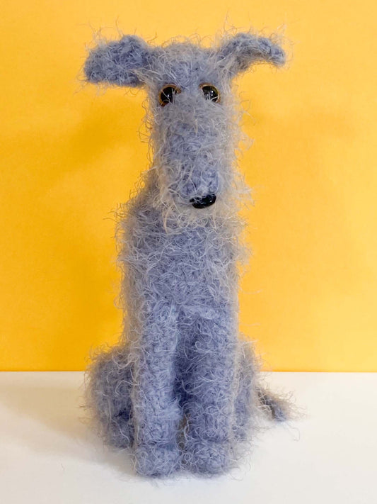LIGHT GREY BLUE CROCHET MINI HAIRY SCRUFFY FUZZY HOUND MINI PLUSH DOG BEDLINGTON WHIPPET WOLFHOUND LURCHER DEERHOUND PLUSH KEEPSAKE MEMORIAL GIFT